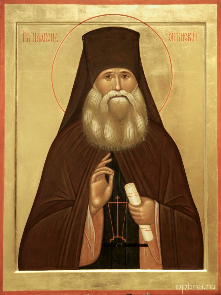 Прп. Иларион (в миру Родион Пономарев, 1805-1873) родился в благочестивой семье воронежского портного. Тихий и кроткий, он с юности стремился к монашеству. Обучался портновскому ремеслу, решив, что в монастыре эта профессия ему пригодится. В 1829 г. переехал в Саратов, где девять лет наставлял рабочих своей артели в благочестии. В 1839 г., посетив многие обители, стал послушником в Оптиной пустыни, где духовно окормлялся у старцев Леонида и Макария. Приняв монашеский постриг в 1849 г., 20 лет служил келейником у прп. Макария. После его кончины стал скитоначальником (1863) и духовником обители, проявляя дар прозорливости и кроткое терпение даже к клеветникам. Предсказав свою кончину, отошел ко Господу 1 октября 1873 г.