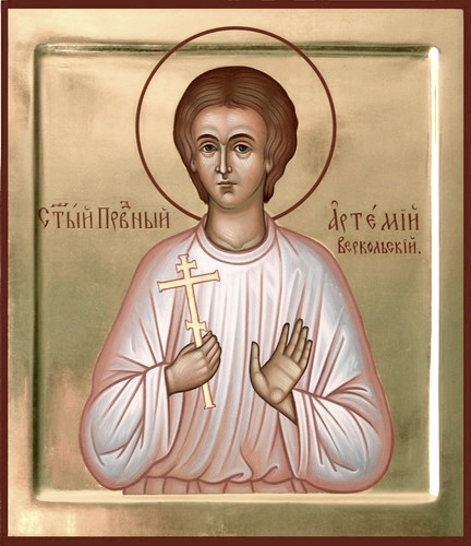 О святом мученике Артемии древние сказания сообщают, что он был родом из знатного Римского семейства, имел звание сенатора и при императоре Констанции заведовал всем царским имуществом.