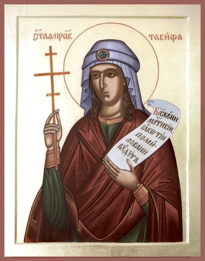 Святая праведная Тавифа (I), женщина добродетельная и милосердная, принадлежала к христианской общине в Иоппии. Случилось так, что она, тяжело заболев, умерла. В то время недалеко от Иоппии, в Лидде, проповедовал святой апостол Петр. К нему были посланы гонцы с убедительной просьбой о помощи. Когда апостол пришел в Иоппию, праведная Тавифа была уже мертва. Преклонив колена, первоверховный апостол сотворил горячую молитву ко Господу. Затем подошел к одру и воззвал: «Тавифа, встань!» Она поднялась совершенно здоровой (Деян.9:36).