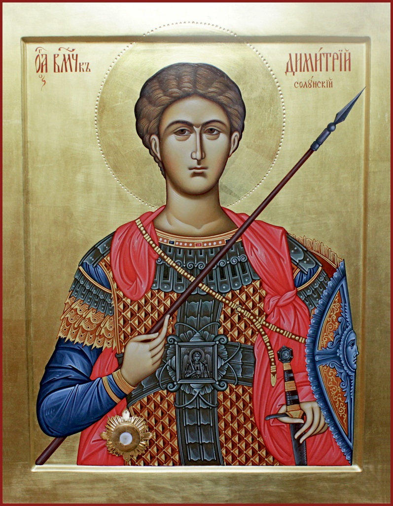 Святой великомученик Димитрий, сын благородных и благочестивых родителей, происходил из города Солуни, где отец его был воеводою. В то время нечестивые цари воздвигли на христиан жестокое гонение; посему отец Димитрия, тайно веровавший в Господа нашего Иисуса Христа и исполнявший Его заповеди, не осмеливался явно исповедовать пресвятое Его имя, боясь страшных угроз язычников. Внутри палат своих в сокровенной горнице он имел две святые иконы, украшенные золотом и каменьями; на одной из них было изображение Господа нашего Иисуса Христа, а на другой – Пресвятой Богоматери; пред сими иконами он возжигал свечи, воскурял фимиам. В сей уединенной храмине он вместе с супругой своей часто возносил молитвы Истинному Богу, в вышних живущему, Единородному Сыну Его и Пренепорочной Владычице. Сии благочестивые супруги щедро оделяли нищих милостыней и никогда не отказывали людям нуждающимся. Одно лишь сильно печалило их: не было у них детей. Они усердно просили Господа, чтобы Он даровал им наследника, и спустя несколько времени желание их исполнилось.