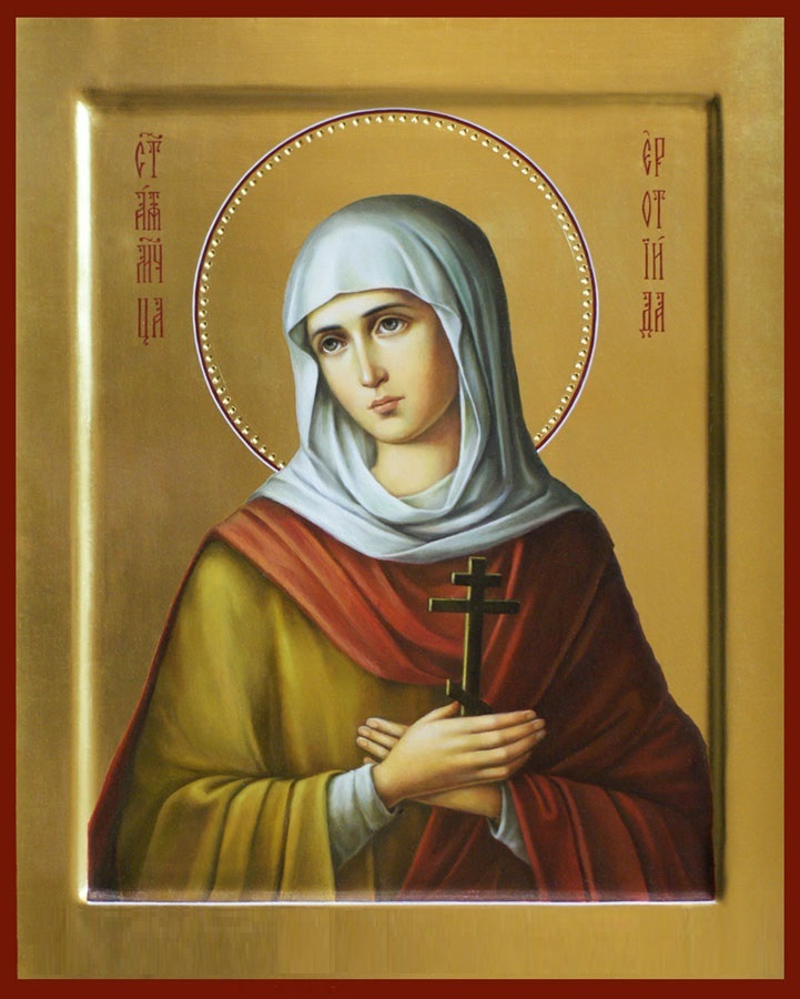 Сии святые жили при императоре Диоклитиане и правителе Каппадокии1 Зеликинтии. Св. Капетолина, происходившая из богатого и знатного рода2. Все имущество свое раздала нищим, а рабов отпустила на свободу. Как христианка, она была схвачена и заключена в темницу, а затем, не согласившись принести жертву идолам, усечена мечем. Служанка ее Еротиида была подвержена истязанию палками за то, что бросила, заступаясь за госпожу, в правителя камнем. Оставшись после истязания невредимою, она также была усечена мечом.