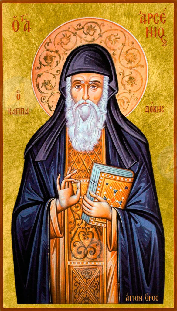 Прп. Арсений Каппадокийский (ок. 1840-1924) родился в каппадокийском селе Фараса. Приняв монашество и священный сан, 55 лет он окормлял свою паству, прославившись даром чудотворения и исцеления, которые проявлялись как к христианам, так и к мусульманам. Предвидев исход греков из Малой Азии, он сопровождал переселенцев и скончался на острове Корфу. Его мощи ныне пребывают в монастыре св. Иоанна Богослова в Суроти, а канонизация святого состоялась в 1986 году за многочисленные посмертные чудеса.