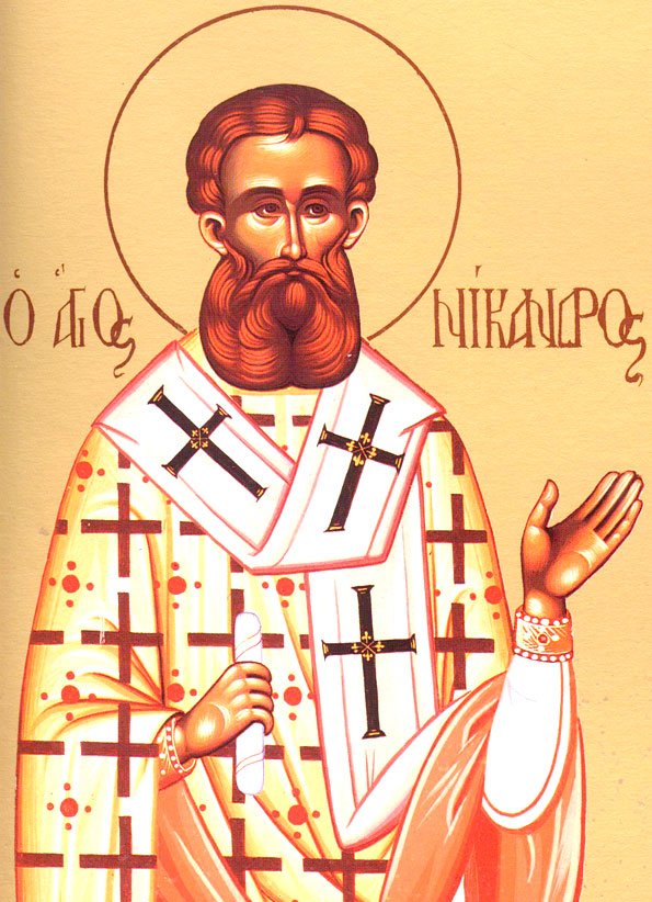 Святые Никандр и Ермей просвещены были светом учения Христова и поставлены на священнослужение святым Апостолом Титом1. Многих эллинов2 они обратили от языческого заблуждения и привели ко Христу. За это они были схвачены и приведены на допрос к комиту3 Ливанию. Когда Ливаний, после долгих стараний отвратить их от Христа, ничего не мог достигнуть, он повелел привязать их к резвым коням и, гоняя последних, влачить рабов Христовых. Влачимые таким образом долгое время, они обагрили землю своею кровью. Тела их, ударяясь по земле о камни и пни, покрывались ранами и, по закону естества человеческого, им надлежало бы умереть, если бы Сам Господь не укреплял их во время мучений. Потом едва живых их ввергли в темницу и морили голодом и жаждою; но Господь питал их хлебом небесным4 и исцелял их раны. По некотором времени, они опять были приведены на допрос и, когда отказались повиноваться мучителю, были повешены на дереве, строгаемы железом и палимы свечами. Затем они были брошены в разожженную печь, но остались невредимы, ибо Ангел Господень, сошедши к ним, остудил печь и сохранил их невредимыми от огня. Наконец, мучитель приказал вбить им железные гвозди в голову, сердце и чрево, и после того для них выкопали яму и еще дышащих бросили туда и засыпали землею. Скончавшись такою жестокою и тяжкою смертью, святые Никандр и Ермей достигли вечной радостной жизни с Господом, Которому слава во веки. Аминь.