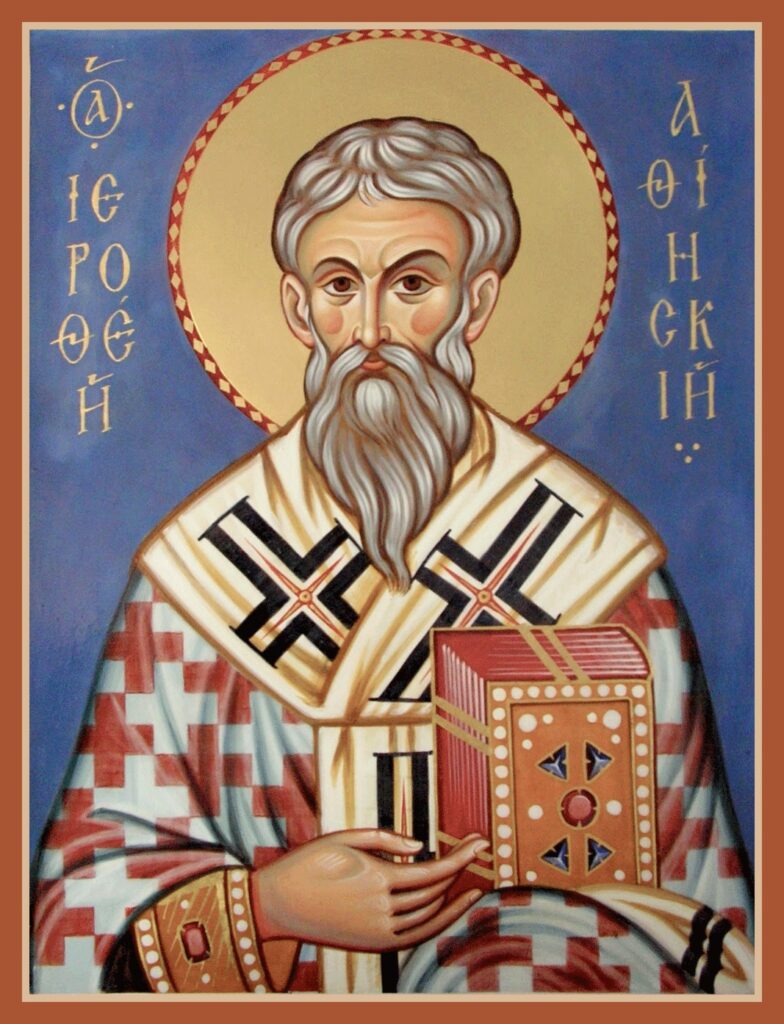 Священноначальника Афинскаго восхваляем тя, яко тайноучившеся тобою странным и неизреченным: явился бое си богоприятный песнословец. Но моли всеблаженне Иерофее, от всяких нам грехопадений избавитися, да зовем: радуйся отче богомудре.