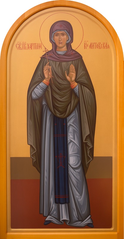 Крепким разумом Харитино, душу утвердши верою, борителя врага яве посрамила еси, у Христа предста всеблаженная, червленицу от кровей твоих носящи, и присно со ангелы радующися: моли за ны страстотерпице.