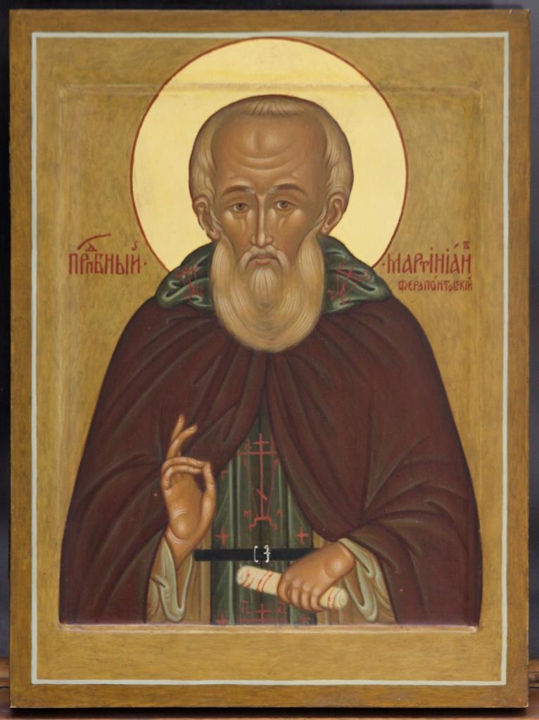 Прп. Мартиниан Белозерский (ок. 1397–1483) – ученик прп. Кирилла Белозерского. В 13 лет пришел в его монастырь, где научился грамоте и переписыванию книг. После смерти наставника основал на озере Воже монастырь. Был игуменом Ферапонтова и Троице-Сергиева монастырей, оказывал духовную поддержку великому князю Василию Темному в борьбе с Дмитрием Шемякой. Последние годы провел в Ферапонтовом монастыре, тяжело болея. Скончался в 85 лет. Его мощи были обретены в 1513 году.