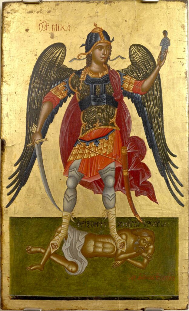 10 По значению слова, Михаил есть Ангел, обладающий необыкновенною, беспримерною духовною силою. У пр. Даниила он представляется особенным защитником и покровителем народа Иудейского (Дан.10:13, 21; 12:1). В откровении св. Иоанна Богослова Архангел Михаил изображается защитником христиан и низложителем дракона с его ангелами: «была война на небе; Михаил и Ангелы его воевали против дракона, и низвержен был великий дракон, змий древний, называемый диаволом и сатаною, с его ангелами на землю»; тогда в злобе своей он начал вредить Церкви Христовой и продолжает вести брань со святыми (Апок.12:1-17); но, в утешение верующим дается видеть в Откровении, что это исконная борьба с врагом нашего спасения окончится совершенною победою Агнца (гл. 19 и 20), и что в борьбе с змием мы имеем высших защитников и покровителей, во главе со святым Архангелом Михаилом. Почитание святого Архангела Михаила в православной церкви восходит к самым древним временам.