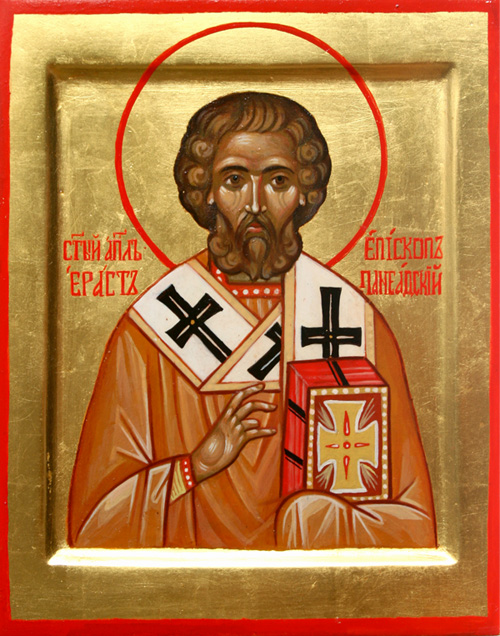 упоминает святый Апостол Павел в послании к Римлянам (Рим.16:23). Святый Апостол Ераст был сначала диаконом и казнохранителем Иерусалимской церкви, а потом епископом в Панеаде6.