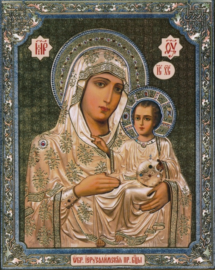 Иерусалимская икона Божией Матери, по преданию, написана святым евангелистом Лукой в 15-й год после Вознесения Господа в Гефсимании (48).