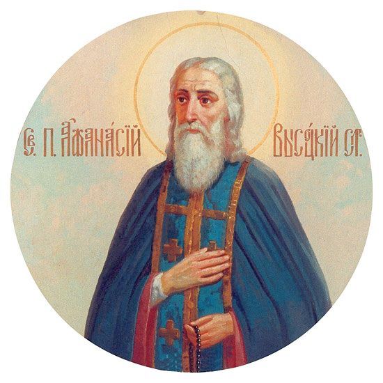 Преподобный Афанасий издревле почитался как чудотворец, наставник иноков и небесный покровитель Высоцкой обители, города Серпухова и его пределов.