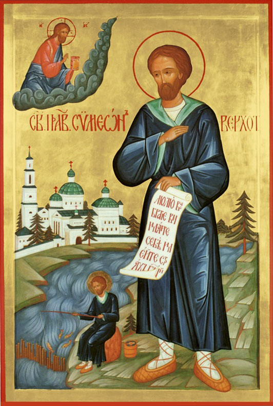 [2] Блаженный Симон скончался в 1584 году и был похоронен в Юрьевецком Богоявленском монастыре, с 1741 года ставшем приходской церковью. Блаженный при жизни и по кончине прославился множеством чудес. В 1635 году патриарху Иосифу было послано житие блаженного Симона, написанное по рассказам людей, знавших блаженного. Патриарх благословил «ради терпеливого жития и чудес блаженного Симона… написать лик его иконным писанием на доске, с сиянием вокруг головы… и почитать его с прочими святыми». Службы блаженному Симону сначала правили по общей Минее, а с 1666 года по особо составленной. В 1722 году город Юрьевец посетил архиепископ Нижегородский Питирим, к епархии которого тогда относился город. Он обратил внимание на гробницу блаженного Симона и запретил отправлять ему службы как святому, а приказал петь по нему панихиды, забрав с собой и житие. В 1741 году снова стало обсуждаться в Святейшем Синоде дело о блаженном Симоне, ввиду обнаруженных иконописных изображений праведника. Чем кончилось дело, осталось неизвестным, потому что все документы, к нему относящиеся, хранились в консисторском архиве в Костроме и были уничтожены пожаром 1887 года. В середине XIX века само собой возродилось почитание блаженного, нашли список его жития и составленную ему службу. Был открыт доступ и к самой гробнице. Во время гонений от безбожников храм был закрыт, а здание отдано под музей. В настоящее время храм возвращен Русской Православной Церкви.