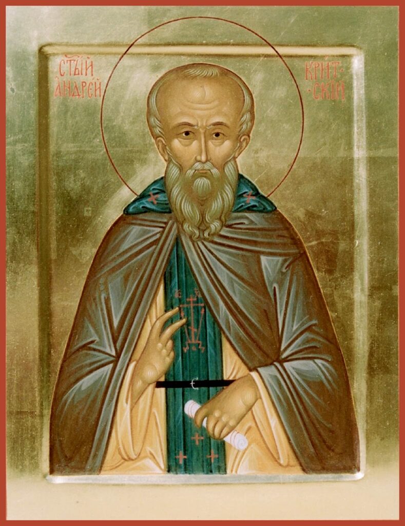 Прмч. Андрей Критский жил в VIII веке при императоре-иконоборце Константине Копрониме. Он публично обличил правителя в гонениях на веру, утверждая, что почитание иконы есть почитание Самого Христа. За это святой был схвачен и подвергнут жестоким истязаниям. Скончался по пути к месту казни.