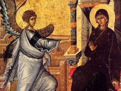 Ангел, совершив, по повелению Божию, свое благовестие и трепетно, благоговейным поклонением почтив Воплощающегося во утробе девической и Деву, воплощающую в Себе Бога, отошел от Нее к престолу Господа – Саваофа, славя таинство вочеловечения Божия, со всеми небесными силами, в неисповедимой радости вовеки. Аминь.