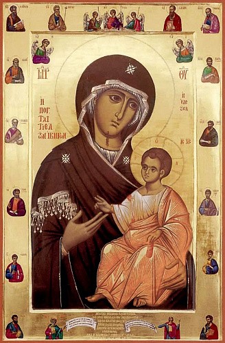 Так будем и мы, братие, опаляемые зноем страстей житейских или плавая по морю житейскому, шествуя в «пустыне страстей», чаще воспринимать благодатное осенение от иконы Божией Матери, как бы Израиль от столпа огненного в пустыне; это осенение охранит нас от многих погибельных заблуждений жизни. И хотя сердце наше часто жестоко для Бога и непокорно Ему, как сердце ветхозаветного Израиля, но все же «рукою крепкою» и нас благая Вратарница может отвести от многих путей погибели и приблизить к раю, как Израиля приближала ведущая его десница Божия к земле обетованной. Только бы совсем не удаляться нам от Бога и Его Пречистой Матери своим вечным добровольным уклонением на пути своего развращенного сердца и, когда услышим призывающий к Себе нас глас Его, зов благой Вратарницы, двери райские нам отверзающей, не ожесточиться, подобно Израилю, в дни искушения в пустыне, а чрез то не лишиться вшествия в землю обетованную, то есть рай, за непокорность (Евр. 3, 7–19). Аминь.