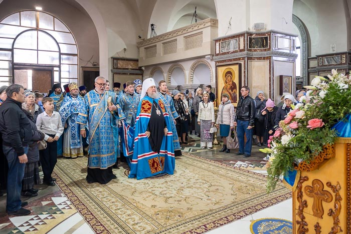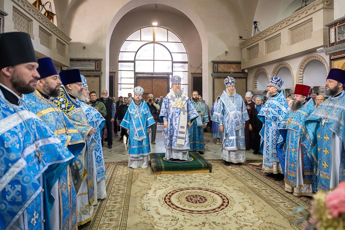 В праздник Покрова Божией Матери митрополит Александр совершил Литургию в алма-атинском храме в честь Собора Пресвятой Богородицы