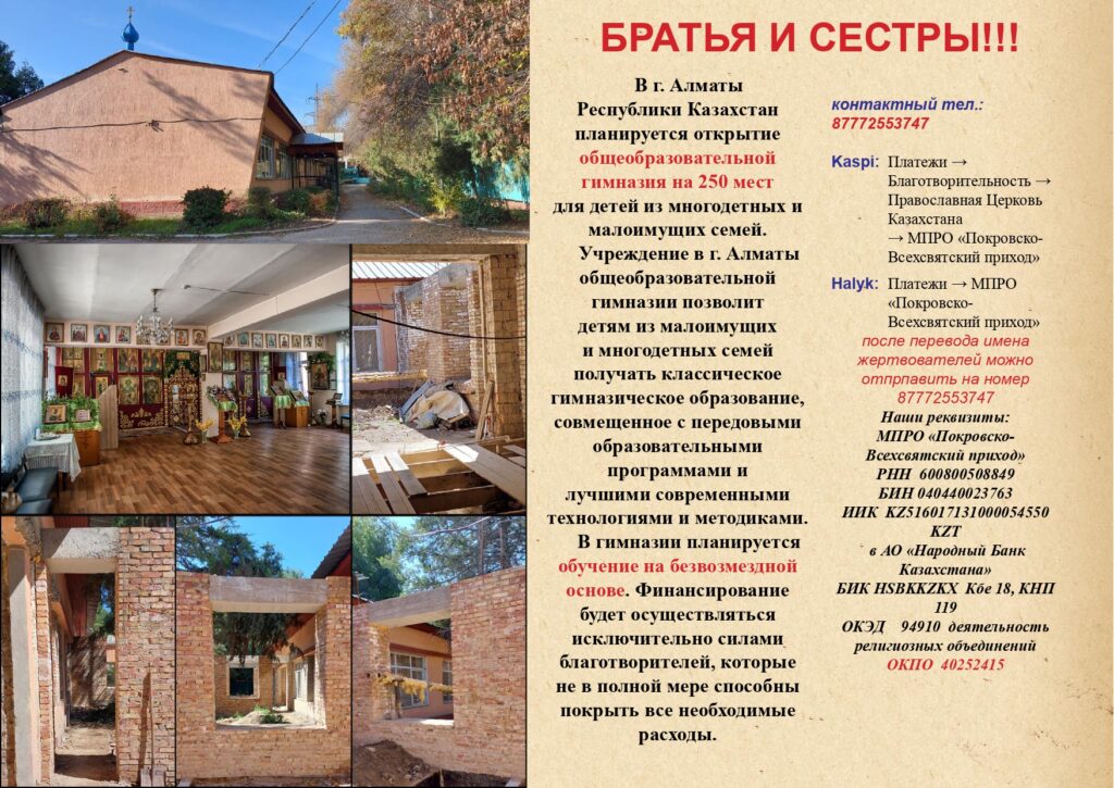 Русская Православная Церковь МПРО "Покровско-Всехсвятский приход" г. Алматы